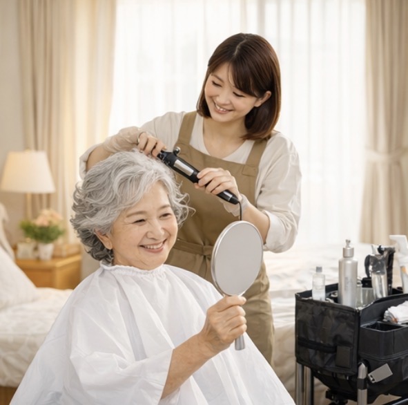 高齢化社会が進む中、外出が難しい方にも、安心して美容サービスをご利用いただけるよう心を込めて施術いたします。